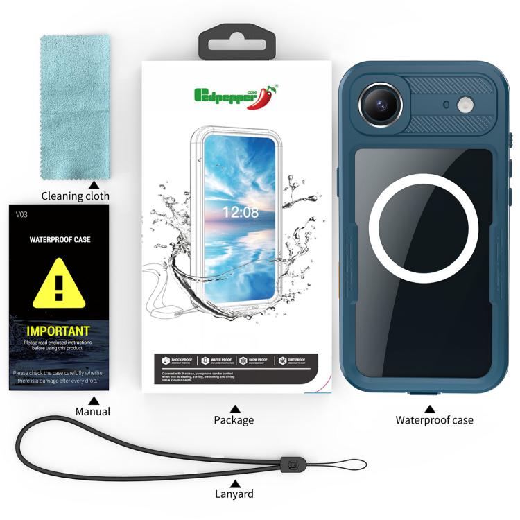 Funda MagSafe RedPepper IP68 resistente al agua y triple protección para iPhone Air (cian + azul lago)