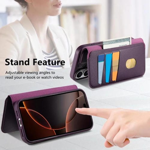 Funda Neo de cuero con correa de agarre para el dedo para iPhone 17 (morada)