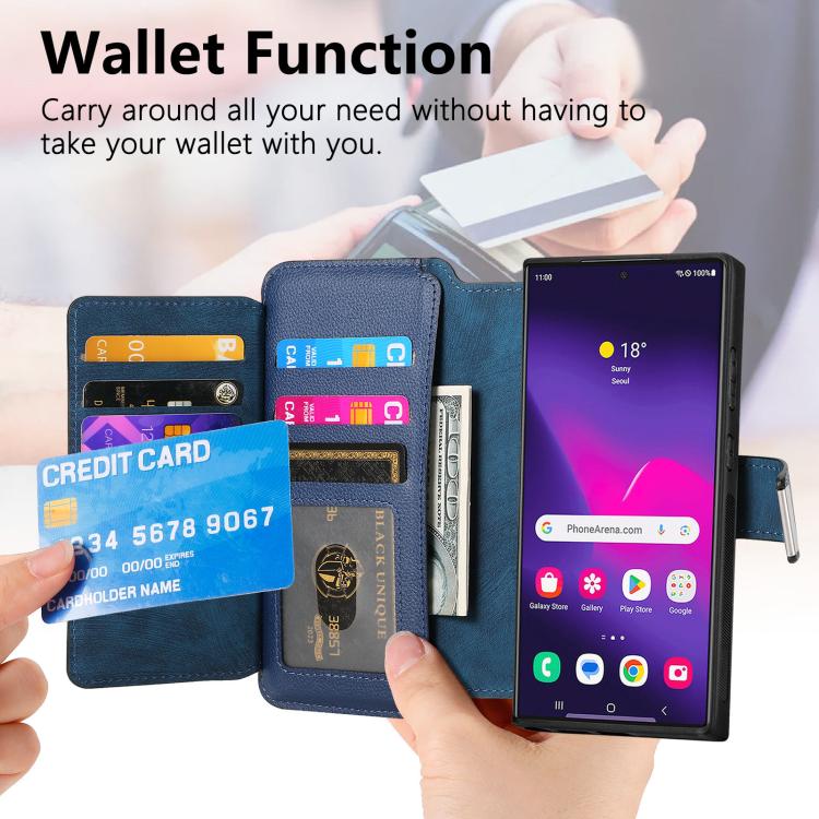 Funda Neo MagSafe RFID antirrobo con cremallera para Samsung Galaxy S24 Ultra 5G, de cuero estilo retro (azul)