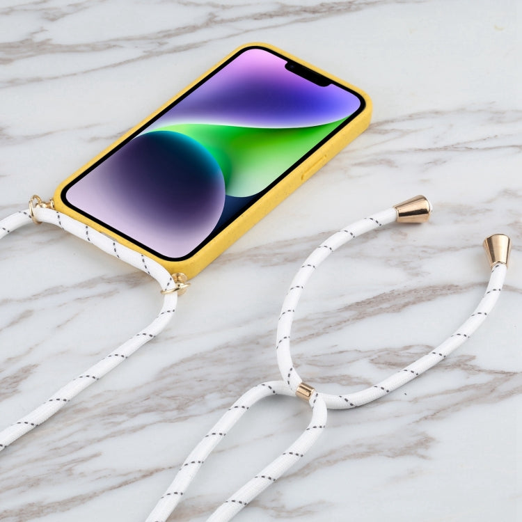 Funda para iPhone 16 TPU a Prueba de Golpes con Paja de Trigo y Cordón para El Cuello (Amarillo)