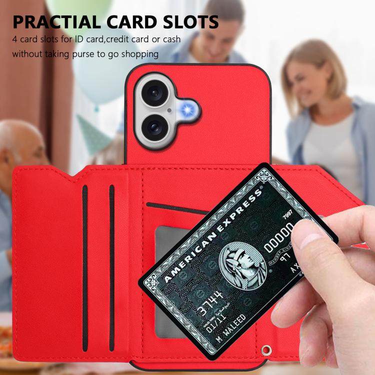 Funda para iPhone 17 con cuatro ranuras para tarjetas y correa para la muñeca (roja)