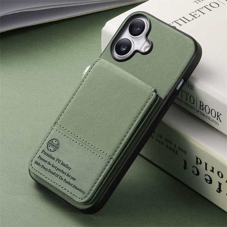 Funda para iPhone 17 de piel y sarga con tapa vertical RFID para tarjetas (verde)