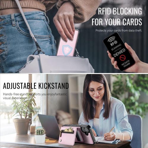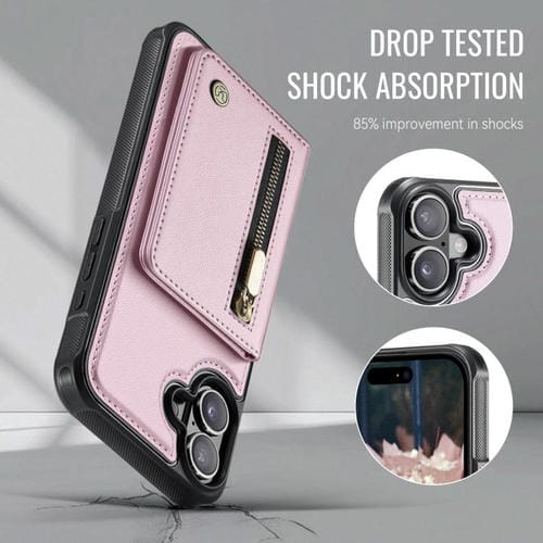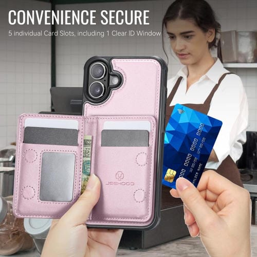 Funda para iPhone 17 JEEHOOD J12 con cremallera MagSafe RFID y tarjetero (rosa)