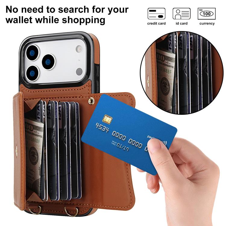 Funda para iPhone 17 Pro con ranura para tarjeta RFID y cordón largo (marrón)