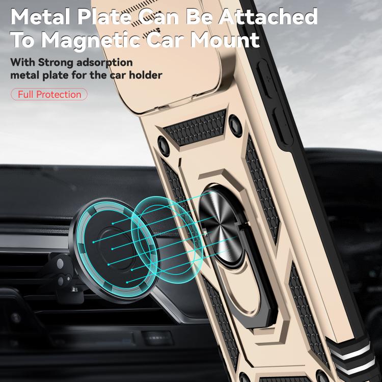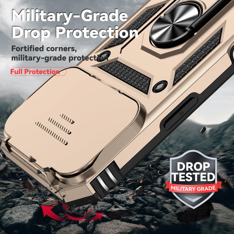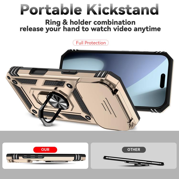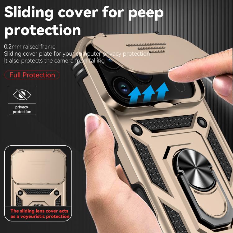 Funda para iPhone 17 Pro con soporte deslizante Camshield (dorada)