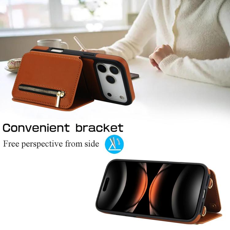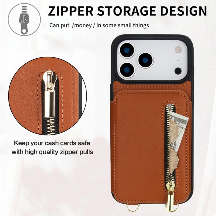 Funda para iPhone 17 Pro Max YM006 con cremallera y doble cordón (marrón)