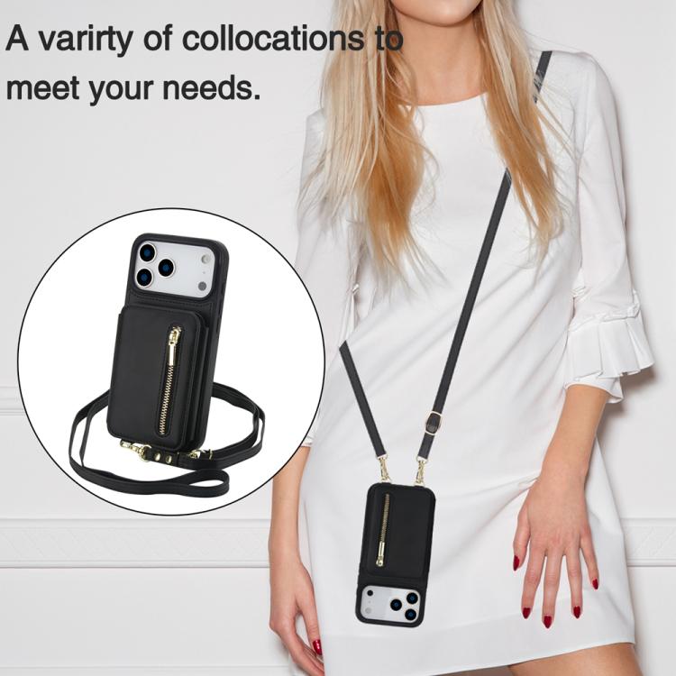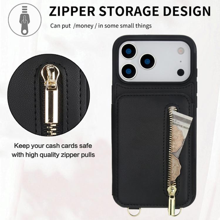 Funda para iPhone 17 Pro YM006 con cremallera y doble cordón (negra)