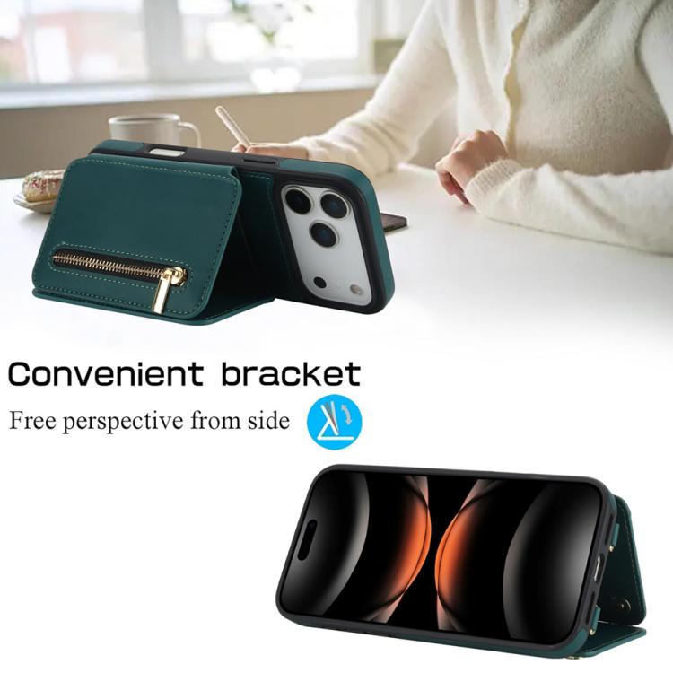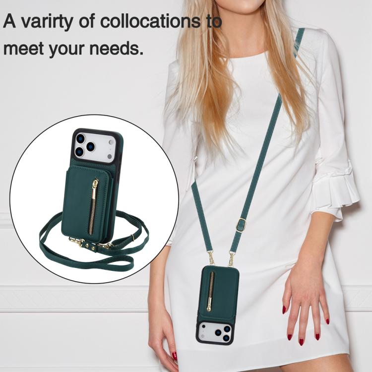 Funda para iPhone 17 Pro YM006 con cremallera y doble cordón (verde)