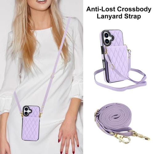 Funda para iPhone 17 YM015 con diseño de rombos y RFID (morado claro)