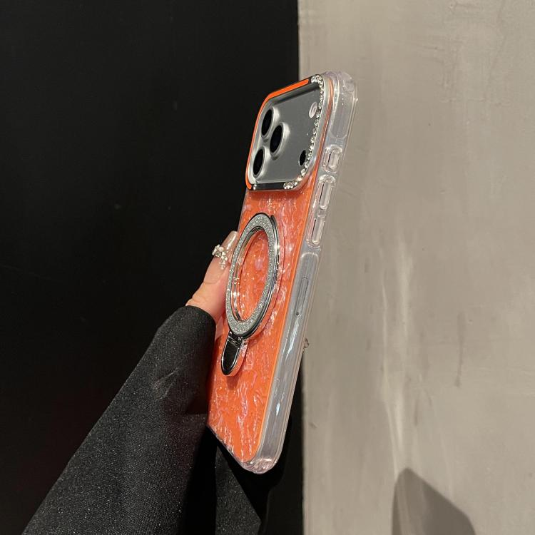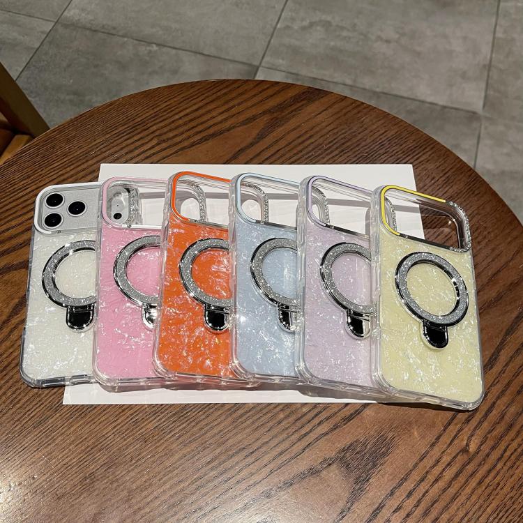 Funda para iPhone Air con carcasa dorada y colorida, diseño estampado en TPU+IMD, con soporte magnético brillante (rosa).