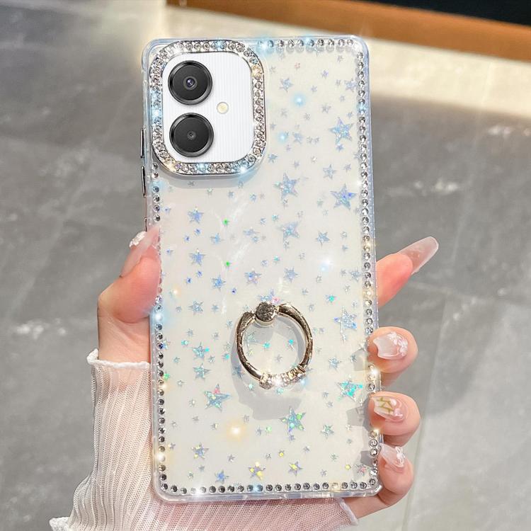 Funda para Samsung Galaxy A07 5G con anillo de TPU con purpurina y diamantes de imitación, anticaídas (estrellas transparentes)