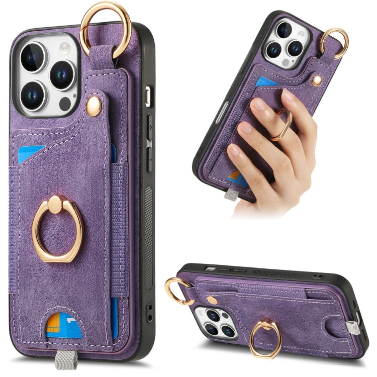Funda para Teléfono iPhone 16 Pro con Anillo Tarjetero Asa Estilo Retro (Morado)