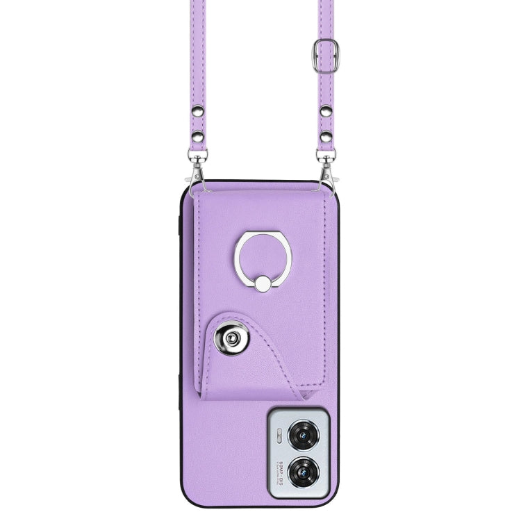 Funda para Teléfono Motorola Edge 50 Fusion Global con Aro, Tarjetero y Cordón Largo (Morado)