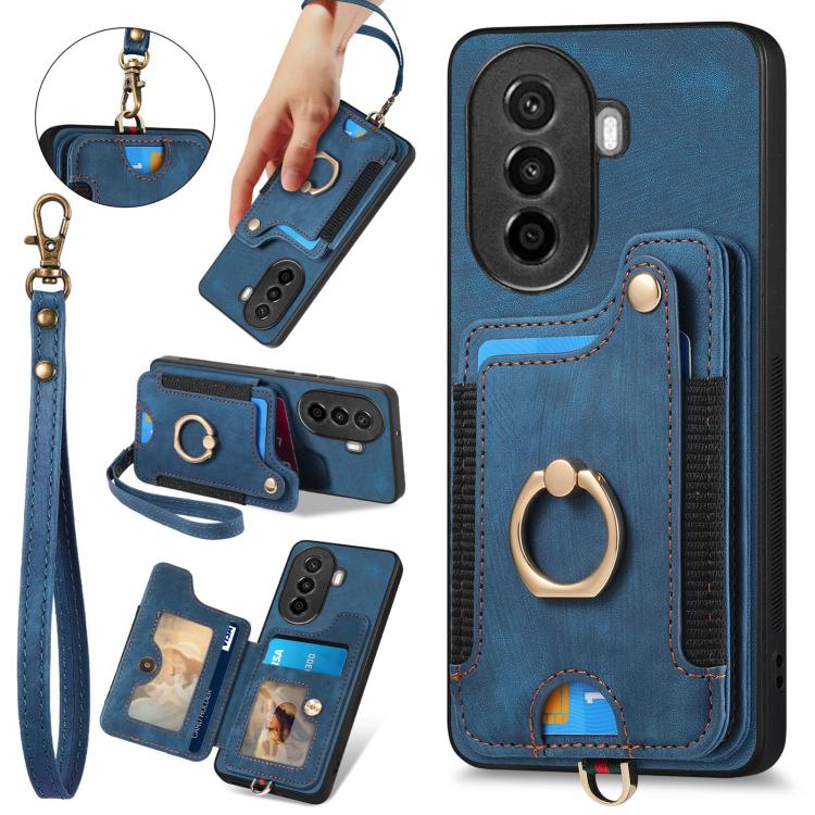 Funda para Teléfono Huawei Nova Y70/Y70+ con Billetera MultiTarjeta, Diseño Retro y Anillo (Azul)