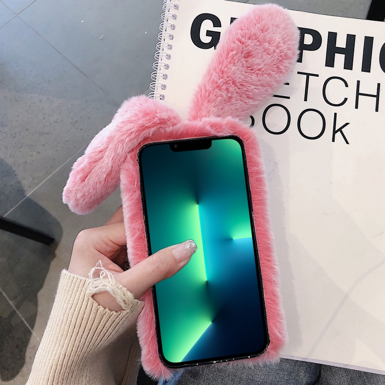 Funda para Teléfono iPhone 13 Pro Max Cobertura Total Conejo Orejas Largas 3D (Rosa)