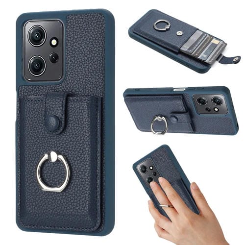 Funda para Teléfono con Diseño de Textura de Lichi y TaRJetero con Anillo para Redmi Note 12 4G (Azul)