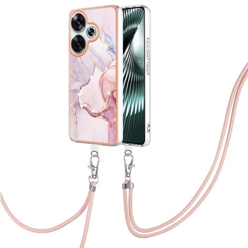 Funda para Teléfono con Imd de Doble Cara con Galvanoplastia de Mármol para Xiaomi Poco F6 5G con Cordón (Oro Rosa 005)