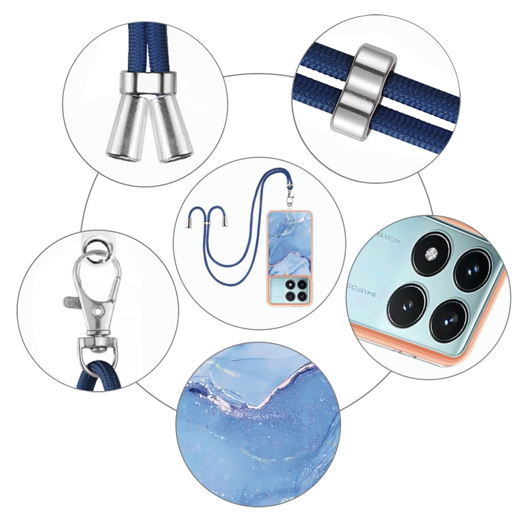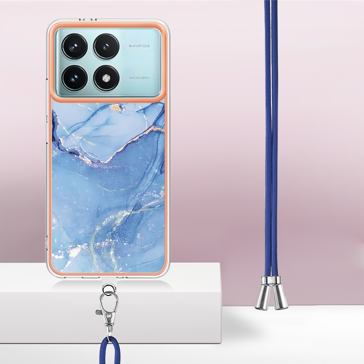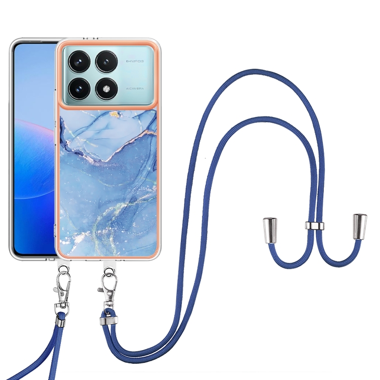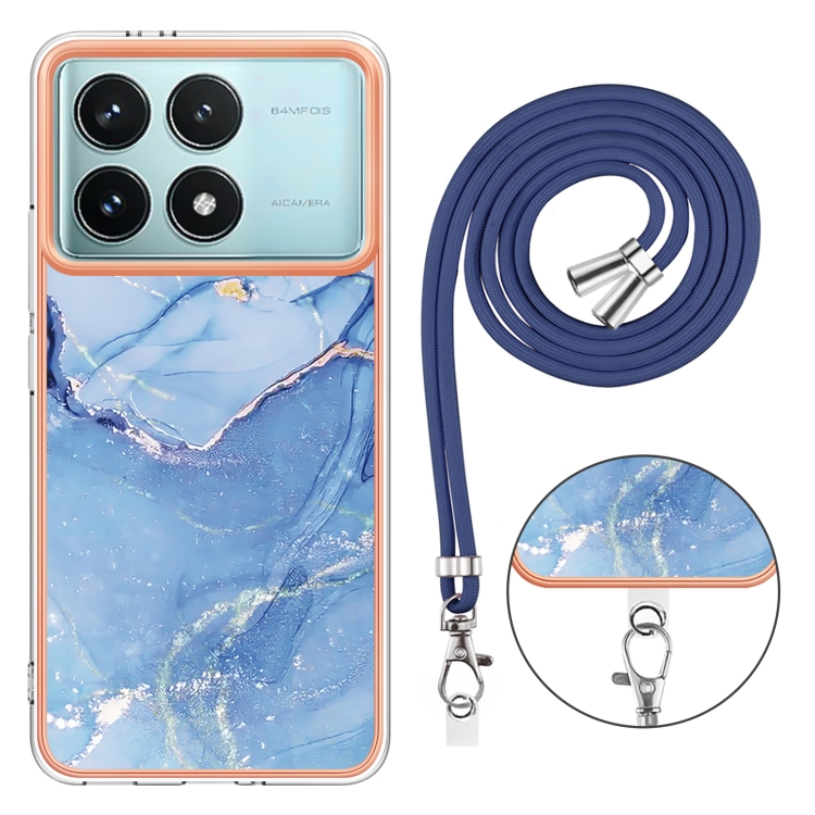 Funda para Teléfono con Imd de Doble Cara con Galvanoplastia de Mármol para Xiaomi Poco F6 Pro 5G con Cordón (Azul 018)