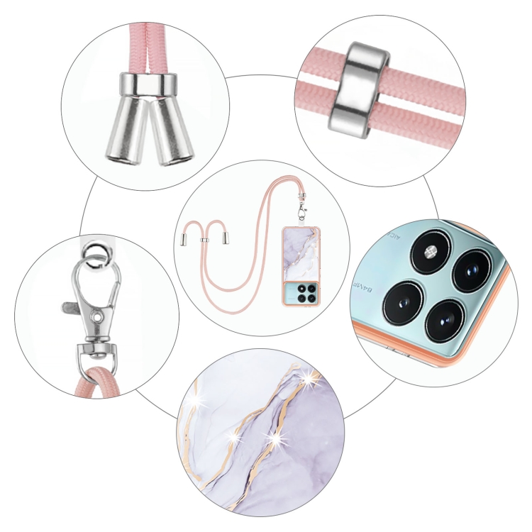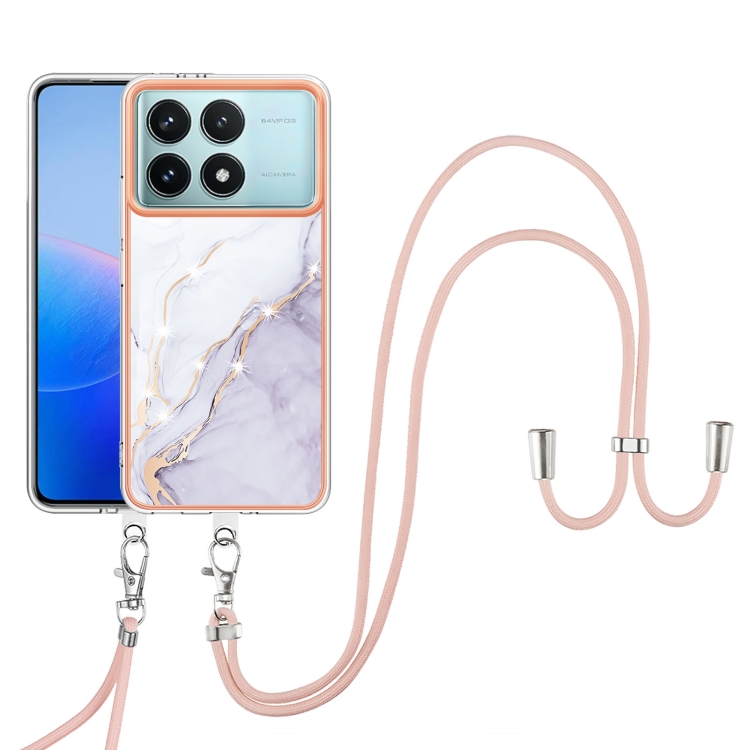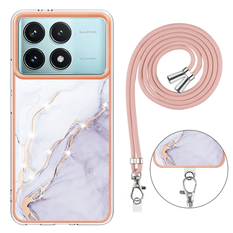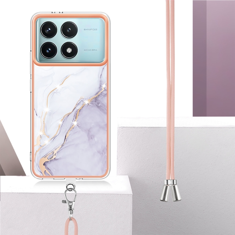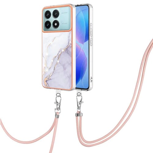 Funda para Teléfono con Imd de Doble Cara con Galvanoplastia de Mármol para Xiaomi Poco F6 Pro 5G con Cordón (Blanco 006)