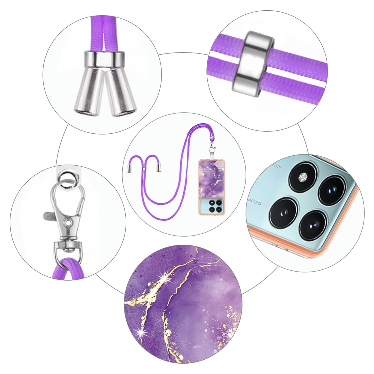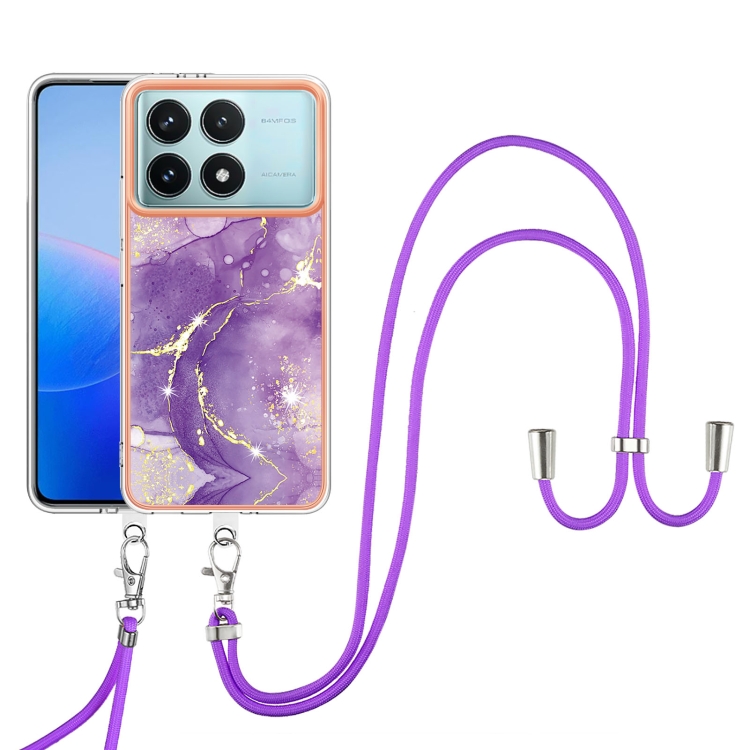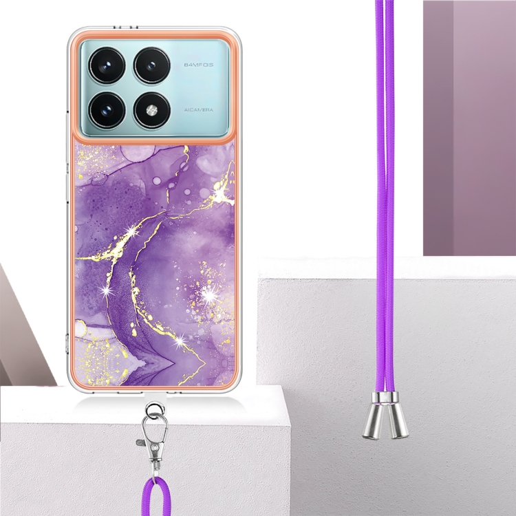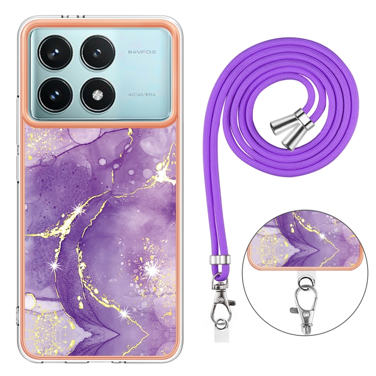Funda para Teléfono con Imd de Doble Cara con Galvanoplastia de Mármol para Xiaomi Poco F6 Pro 5G con Cordón (Púrpura 002)