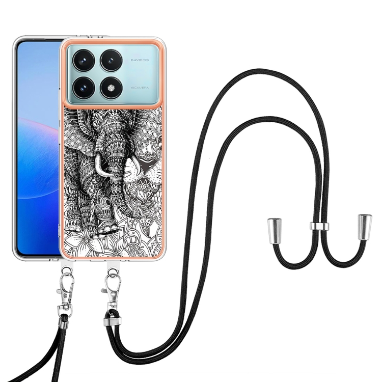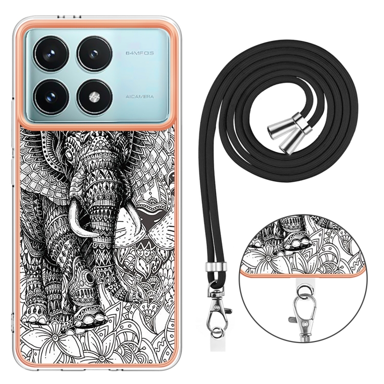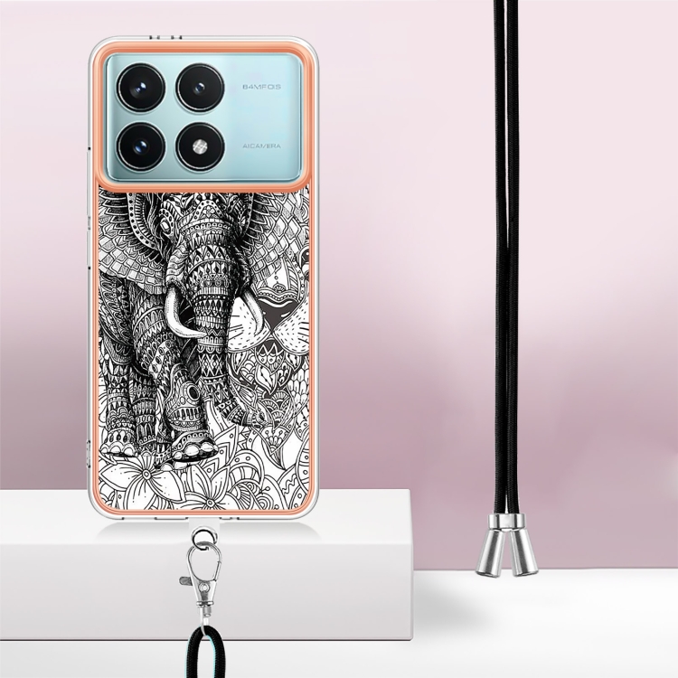 Funda para Teléfono con Imd de Doble Cara Galvanizada con Cordón para Xiaomi Poco F6 Pro 5G (Elefante Tótem)