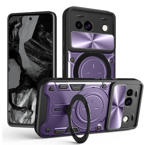 Funda para Teléfono Google Pixel 8A con Soporte Magnético Deslizante y Textura de Cd (Morado)