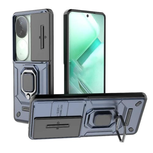 Funda Protectora de TPU + PC con Soporte para Vivo Iqoo Z9S 5G, con Diseño Deslizante y Antigolpes (Azul)