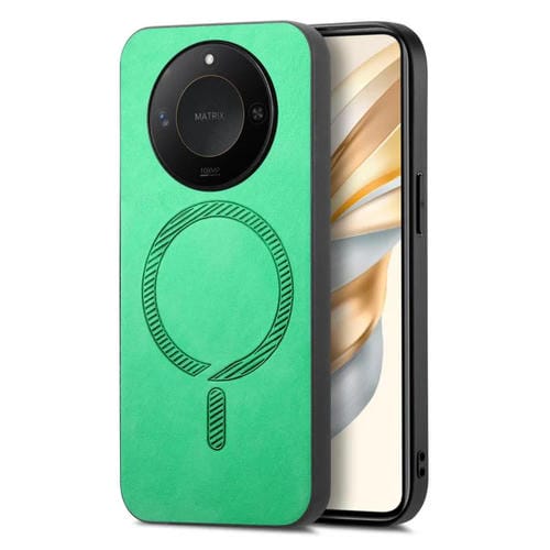 Funda Trasera Magnética de PU para Honor X60 5G con Magsafe Estilo Retro (Verde)