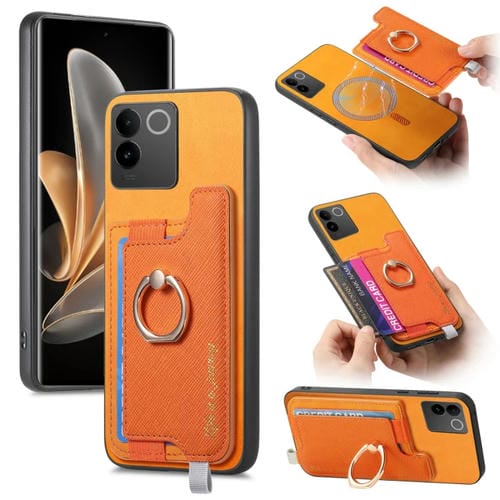 Funda para Teléfono con TaRJetero y Anillo de Cuero con Diseño Retro Magsafe para Vivo S17E / Iqoo Z7 Pro / T2 Pro (Amarillo)