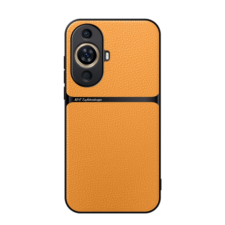 Funda para Teléfono Huawei Nova 11 Pro Piel de Lichi Cobertura Total Magnética a Prueba de Golpes (Amarilla)