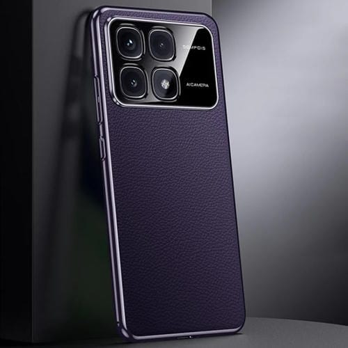 Funda para Teléfono Redmi K70 Ultra de Primera Capa de Piel de Vaca Galvanizada para PC (Morado Oscuro)