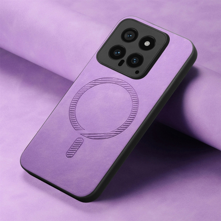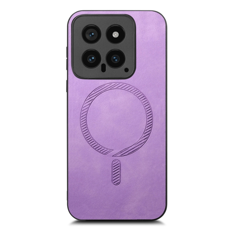 Funda Para Teléfono Xiaomi 14 Pro 5G Con Tapa Trasera De Pu Magsafe De Color Sólido Retro (Morado)