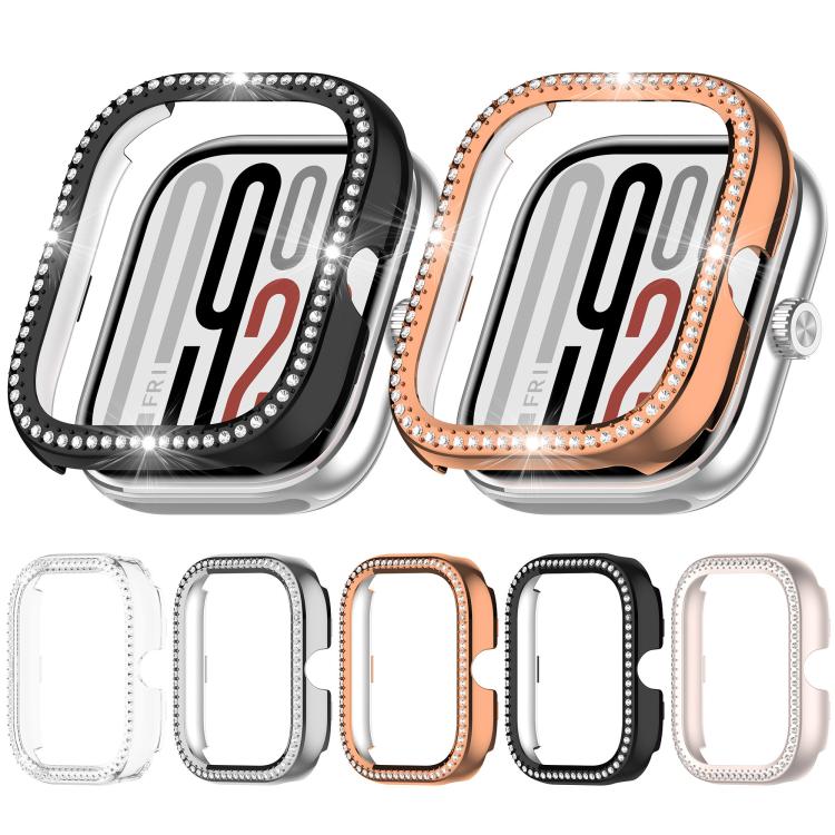 Funda protectora para reloj Redmi Watch 5 con una sola fila de diamantes y media cobertura para PC (oro rosa)