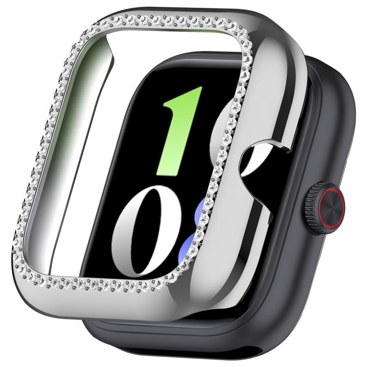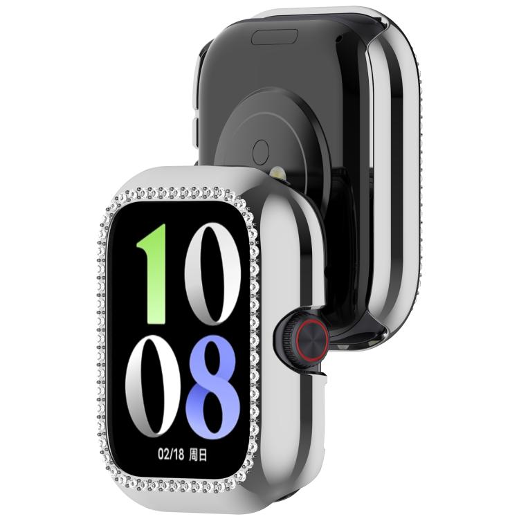 Funda protectora para reloj Vivo Watch GT / iQOO Watch GT de una sola fila con diamantes y media cobertura hueca para PC (plateada)