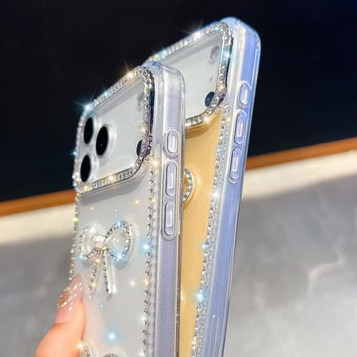 Funda transparente con lazo doble y purpurina de diamante para iPhone 17, a prueba de golpes