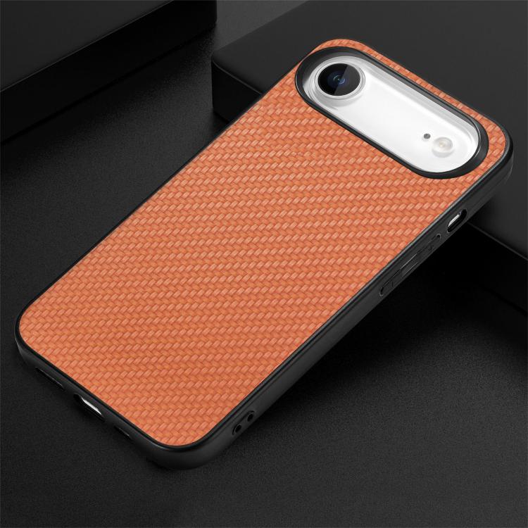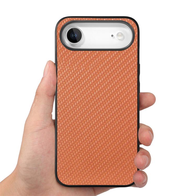 Funda trasera de cuero con textura de fibra de carbono para iPhone Air (marrón)