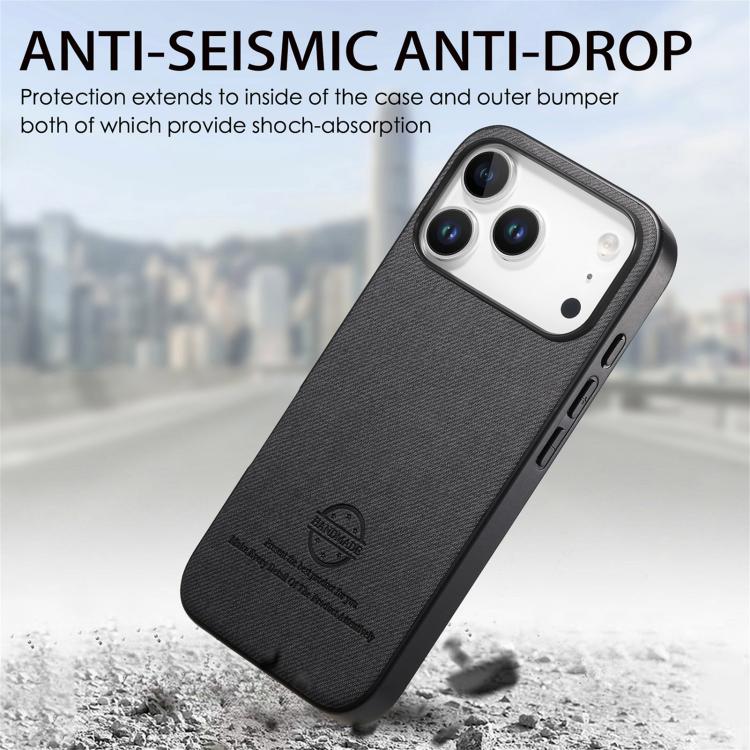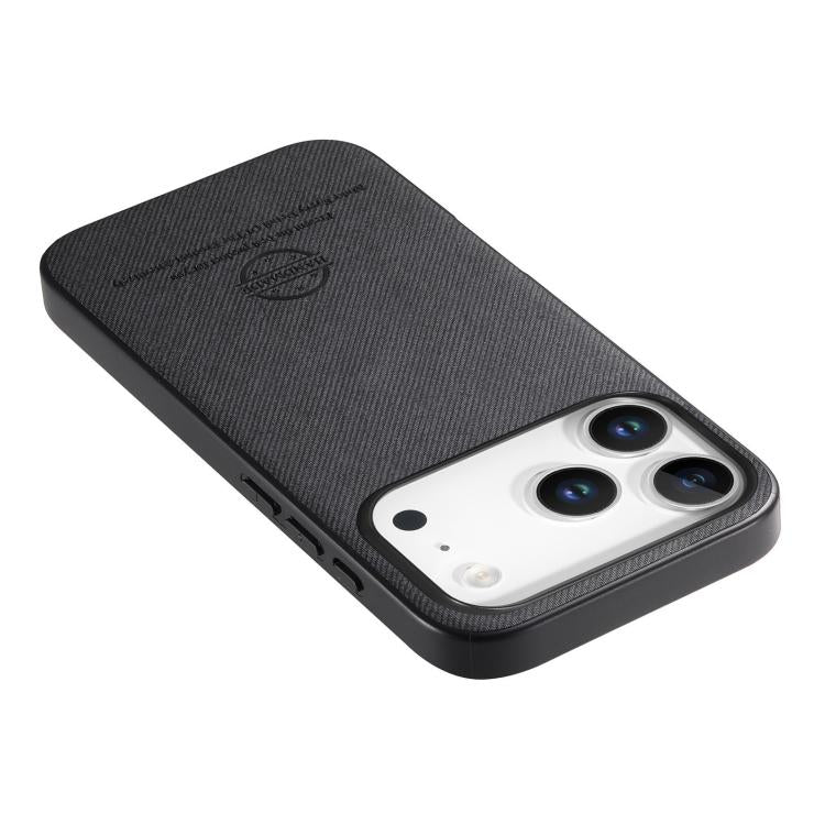 Funda trasera de piel y sarga para iPhone 17 Pro Max (negra)