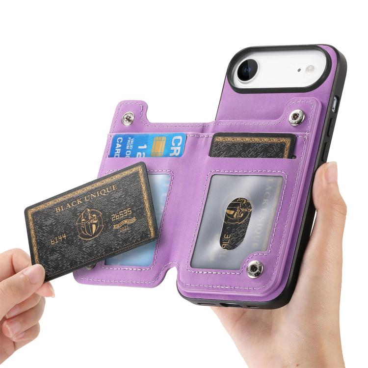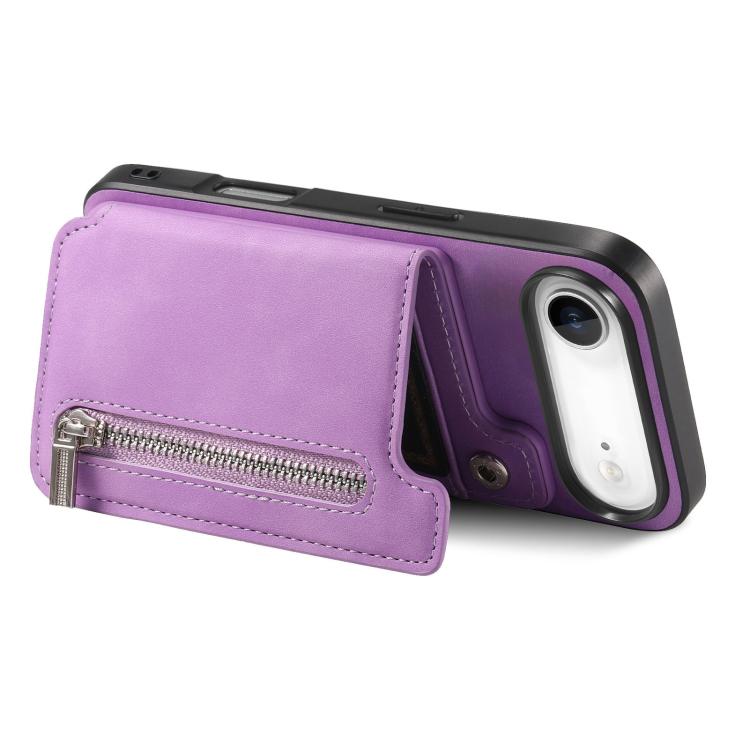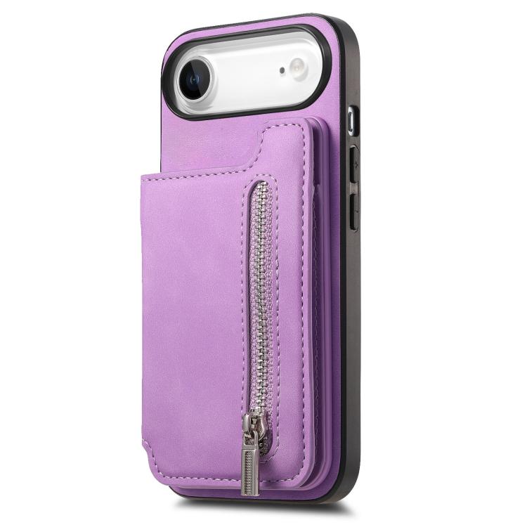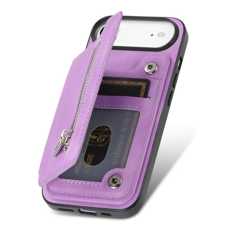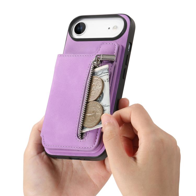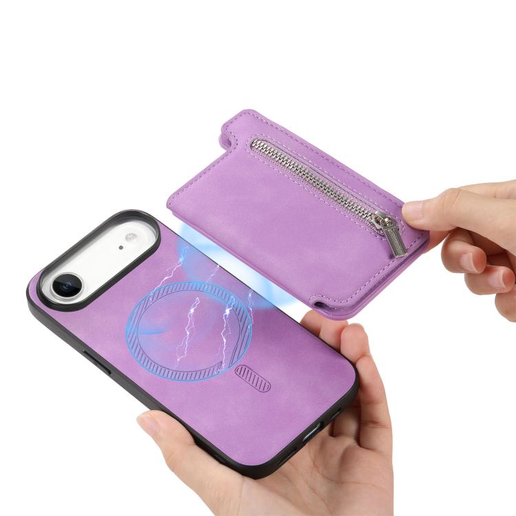 Funda trasera para iPhone Air Retro MagSafe con cremallera, tarjetero y bolsillo para tarjetas (morado)