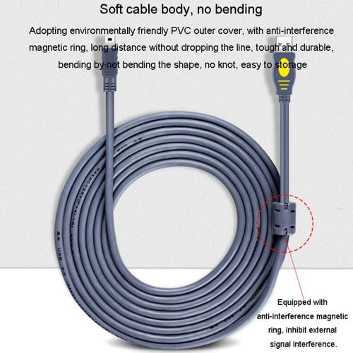 • Longitudes disponibles: 1,2 m, 1,5 m, 5 m y 10 m; diseño con anillo magnético antiinterferencia; doble interfaz niquelada para mayor durabilidad y resistencia a la corrosión; blindaje de papel de aluminio para protección contra interferencias externas