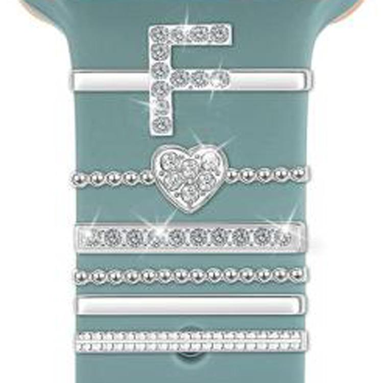 Juego de 6 correas de silicona universales para reloj inteligente, accesorios de metal decorativos, tamaño F (plata)