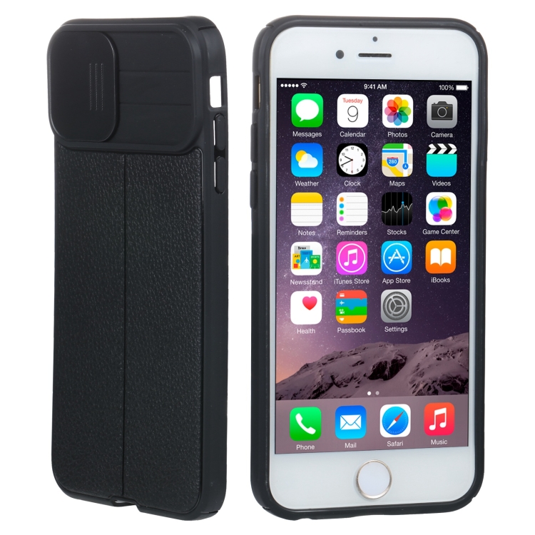 Funda Protectora TPU Litchi Texture Sliding Camshield para iPhone 6 (Negro)