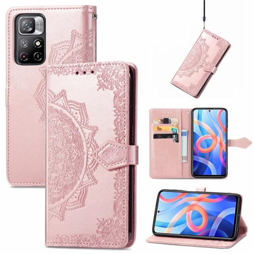 Mandala Flower Flowsed Flip Leather Funda para Teléfono para Xiaomi Redmi Note 11 (Oro Rosa)