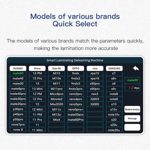 La Máquina de laminación y desespumado TBK208C es un equipo profesional diseñado para la Reparación y mantenimiento de Pantallas curvas de hasta 15 pulgadas. Compatible con la mayoría de Teléfonos Móviles y Tablets del mercado, este dispositivo integra funciones de laminación al vacío y eliminación de burbujas en Pantallas curvas y rectas. Cuenta con un sistema inteligente y una interfaz de uso sencilla que facilita procesos de alta precisión. Su cilindro de varilla grande de 125 mm y cuatro varillas guía sincronizadas garantizan una laminación estable y uniforme. El equipo incluye un almacén de gran capacidad para dispositivos de hasta 15 pulgadas y está equipado con un Sensor de autobloqueo que asegura la correcta operación de la bomba de aire solo cuando la puerta está bien cerrada. El modelo TBK208C utiliza Enchufe AU y está fabricado en materiales de alta calidad para un rendimiento duradero en talleres de Reparación especializados.