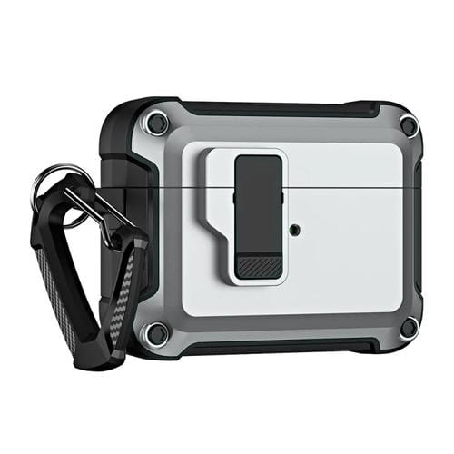 Funda Protectora Para AirPods Pro 2 TPU + PC Con Interruptor De Bloqueo y Gancho (Gris)