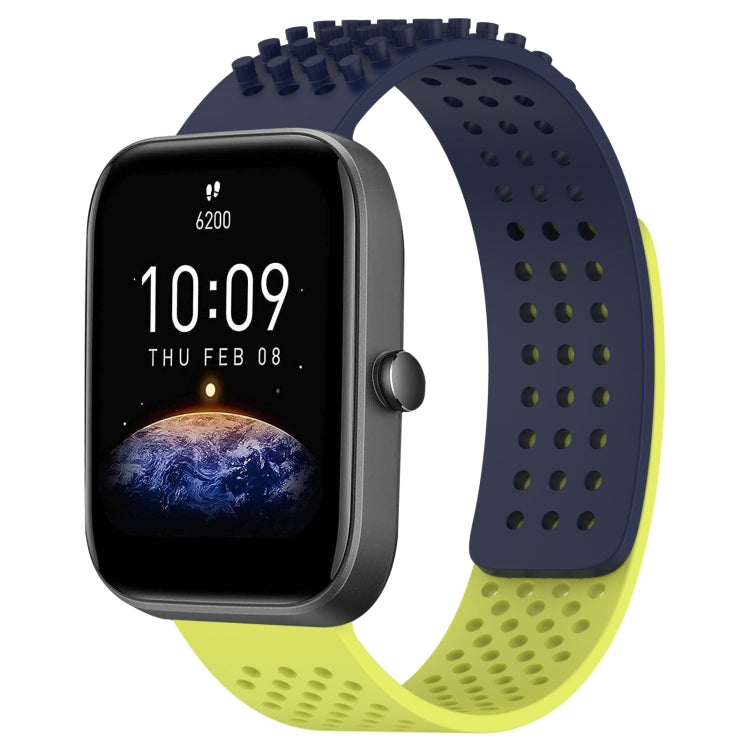 Correa para Amazfit Bip 3 de Silicona con Puntos 3D Transpirables y Orificios 20mm (Azul Medianoche, Verde Lima)