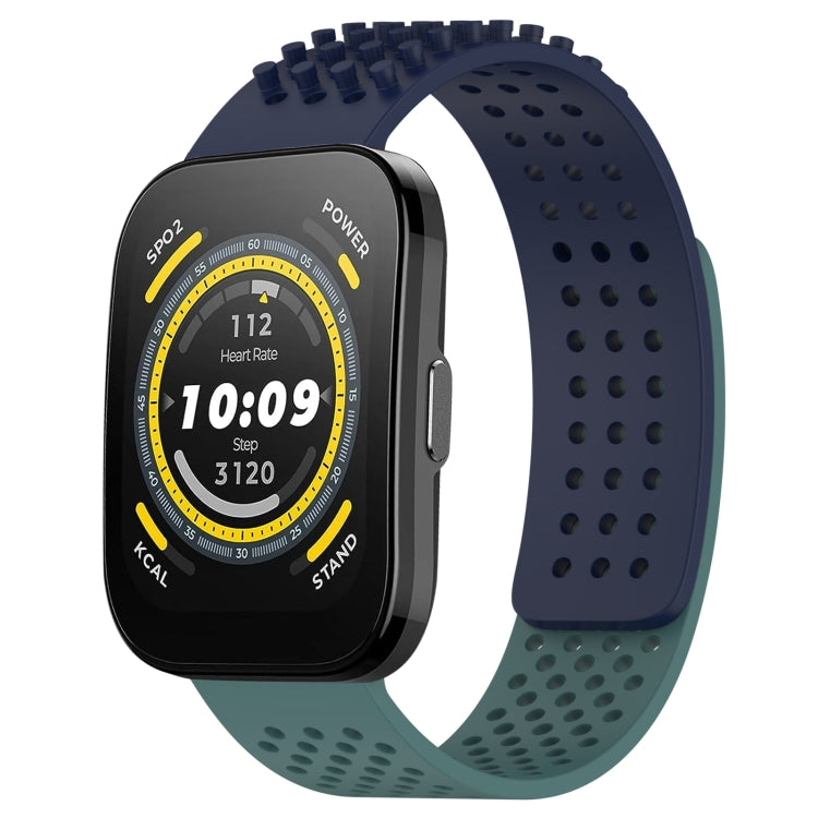 Correa de Silicona para Amazfit Bip 5 con Puntos 3D Transpirables y Orificios de 22mm (Azul Medianoche + Verde Oliva)