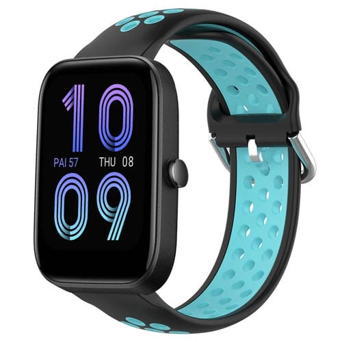 Pour Amazfit Bip3 20 mm bracelet de montre en silicone de sport respirant perforé (noir + bleu)
