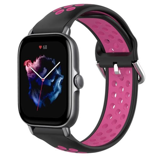 Pour Amazfit GTS 3 Bracelet de montre en silicone de sport respirant perforé de 20 mm (noir + rose rouge)