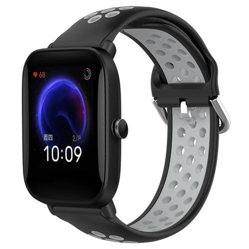 Pour Amazfit Pop 20 mm bracelet de montre en silicone de sport respirant perforé (noir + gris)
