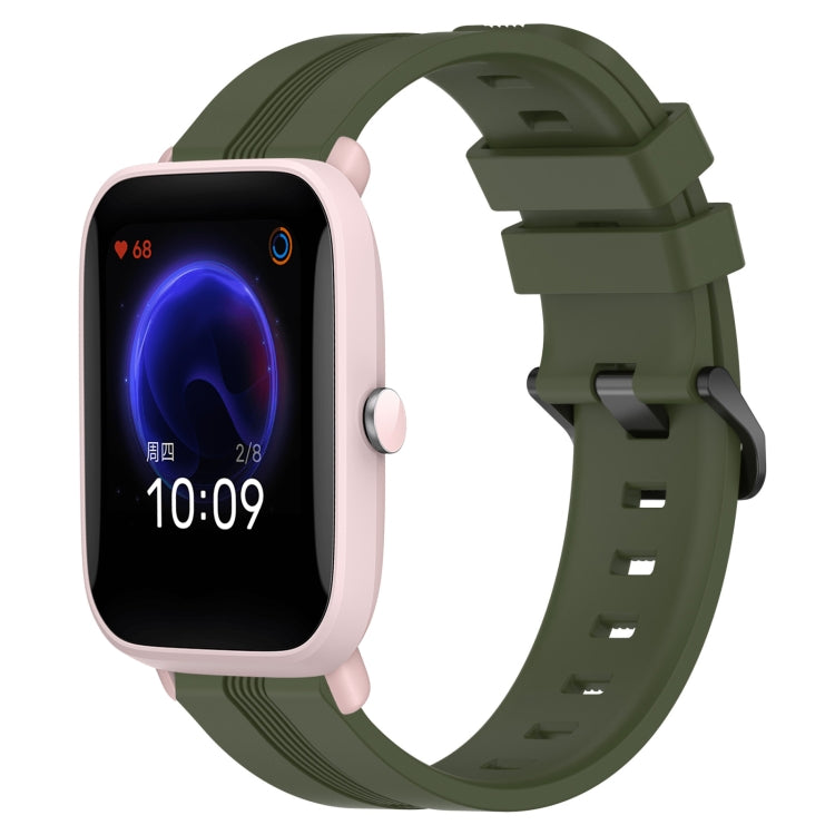Correa de Reloj Amazfit Pop Pro 20mm Silicona con Rayas Cóncavas (Verde Militar)